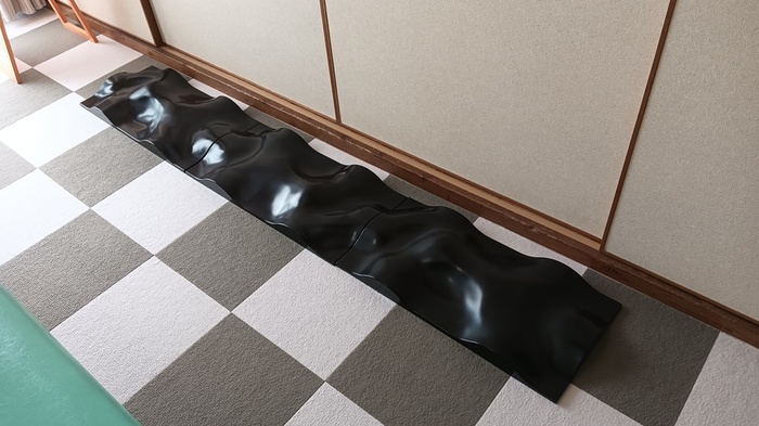 30cm×60cmの発砲ポリウレタン製のボードで、昔のデコボコの道の様なうねうねした構造をしています。↓これは何枚も繋げた状態