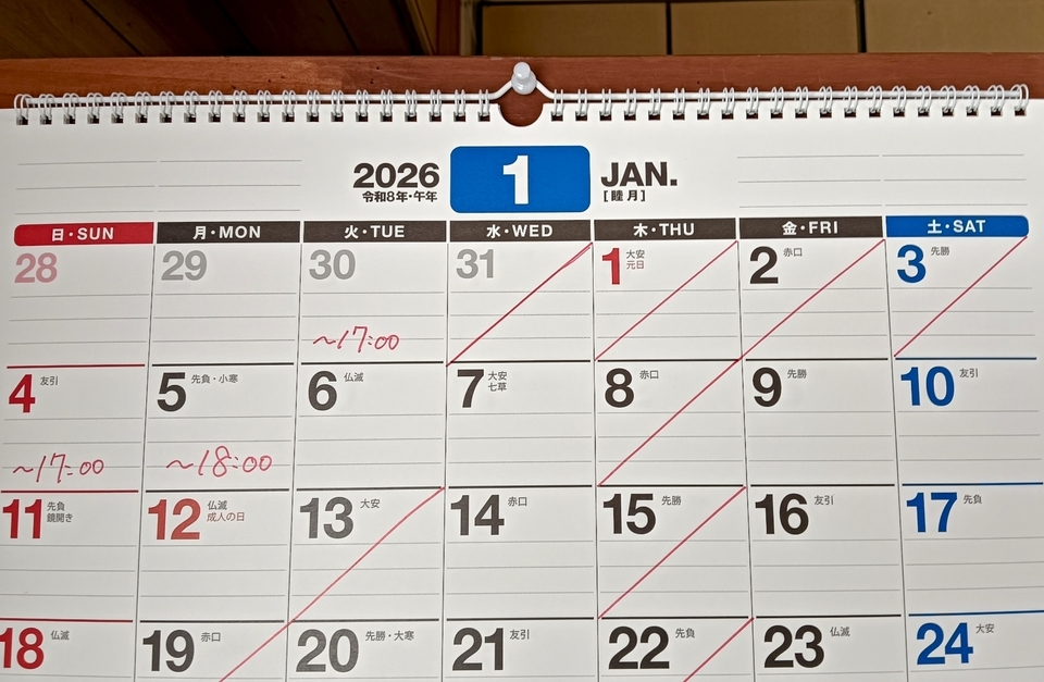 年始も、1/4(日)からスタートするので、1/5(月)も営業致します。