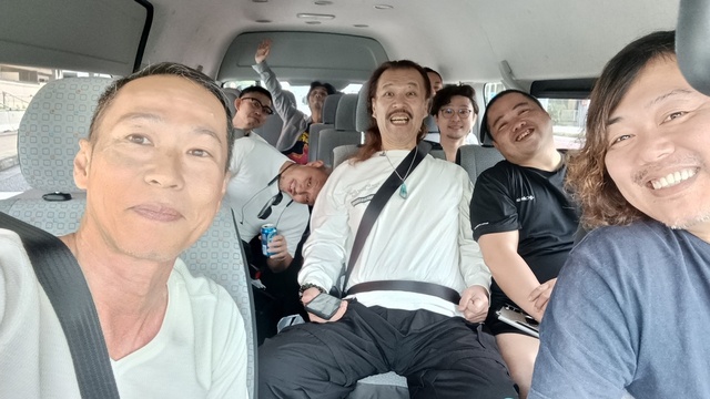 雨のコースに選んだのが、読谷。ハイエースのコミューターを借り、9人で大人の遠足開始~!
