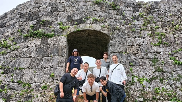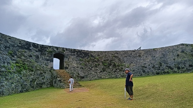 お次は、座喜味城址。車降りて城跡見学する頃には雨も上がり傘差さずに回れ、美しい城壁や空気の美味しさも満喫してもらえました。