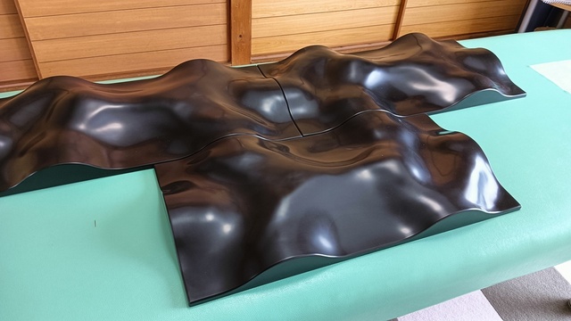 30cm×60cmの発砲ポリウレタン製のボードで、昔のデコボコの道の様なうねうねした構造をしています。↓これは何枚も繋げた状態