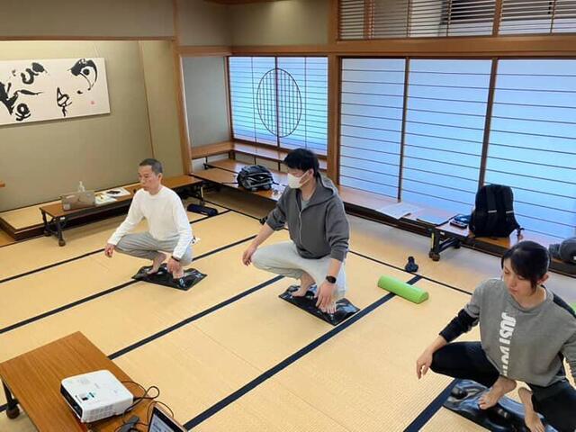 それだけでなく、エクササイズ前の立った時の足の裏の感覚、片足立ちのグラつき、前後屈の可動域など大いに改善しているのもまた実感できます。「早く施術に取り入れたい!!」自分で体感しているからこその思いも湧いて来ます。